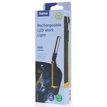 Hama W500-C, pracovné LED svetlo, nabíjací, IP44, magnetické, vyklápací hák, 6 režimov