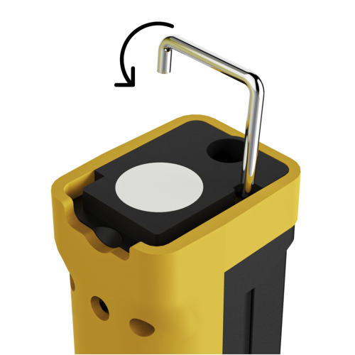 • pripevnenie pomocou vyklápacieho háku napr. na rúrky, káble, tyče alebo pomocou magnetu na kovové povrchy