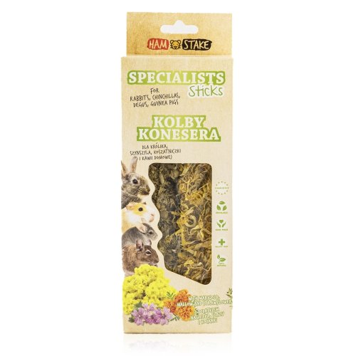 Neodolateľne voňavý klas Ham-Stake tvorený bohatou zmesou sušených byliniek je opatrený konopným pútkom na zavesenie. Ide o skvelú interaktívnu hračku a súčasne aj veľmi chutnú a zdravú maškrtu pre všetkých drobných hlodavých bylinožravcov. Vašim malým kamarátom zaistí jedinečný chuťový a čuchový zážitok aj zmysluplnú zábavu a poslúži im aj na obrusovanie zubov. Obsahuje množstvo vitamínov, minerálov a ďalších zdraviu prospešných látok. Vysoké množstvo vlákniny prospieva správnemu tráveniu. Maškrta navyše šetrí životné prostredie – je možné skonzumovať úplne celú vrátane pútka, takže nevzniká žiadny odpad. Balenie obsahuje 2 klasy. Hlavné prednosti: