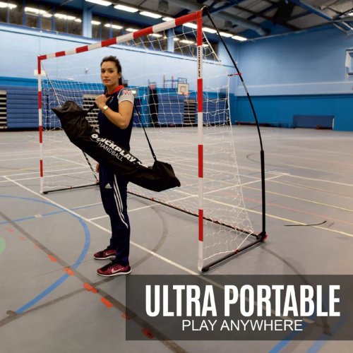 Hádzanárska bránka Handball Goal Senior značky Quicplay je vhodná na tréning do škôl, športových klubov a pre rekreačných hráčov. Ľahko skladacia bránka má rozmery 3 x 2 ma zaťaženú základňu pre väčšiu stabilitu na tvrdom povrchu. Špeciálny patentovaný systém FLEXI POST bol testovaný tak, aby vydržal aj tie najtvrdšie strely. Vďaka svojej nízkej hmotnosti a priloženej taške bránku ľahko uskladníte a prenesiete medzi jednotlivými tréningami. - pre tréning hráčov vo veku 12+ a dospelých - rozmery: 300 x 200 x 107 cm - rozmery balenia: 110 x 22 x 17 cm - hmotnosť: cca 9 kg - jednoduchá montáž - vysoká stabilita na tvrdom povrchu - súčasťou praktický vak