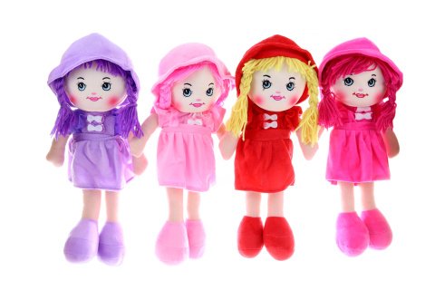 Látková bábika o veľkosti cca 35 x 14 x 8 cm. Bábika po stlačení bruška spieva. Napájanie na 3 AG13 batérie (sú súčasťou). Bábika má mäkké telíčko. Vek 0+