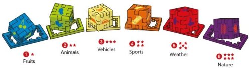Junior - pre deti vo veku 3 - 7 rokov - jednofarebné, s rôznymi ikonami podľa obtiažnosti (* ovocie, ** zvieratá, *** dopravné prostriedky, **** športy, ***** počasie, ***** * príroda). Jedná sa o najjednoduchšie kocky. Original - od 5 do 99 rokov Pro - od 7 do 99 rokov Expert - od 9 do 125 rokov