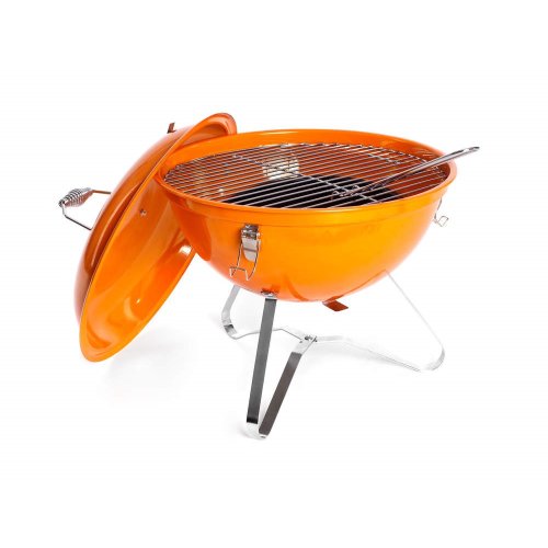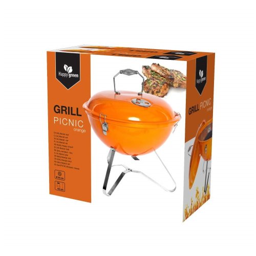 Gril PICNIC je okrúhly gril s pokrievkou s priemerom 36 cm a výškou 42 cm. Gril je vybavený roštom s priemerom 34 cm s chrómovou úpravou. Farba grilu: oranžová. Gril využijete najmä pri kempovaní, na chatách a chalupách.