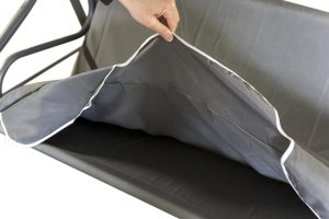 Záhradná hojdačka PANAMA pre 3 osoby, je vhodná na vašu záhradu či terasu. Má kovovú konštrukciu ošetrenú práškovým lakovaním a sedák z polyesteru. Polyesterový sedák, výška 6 cm.