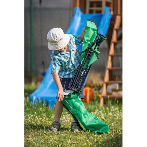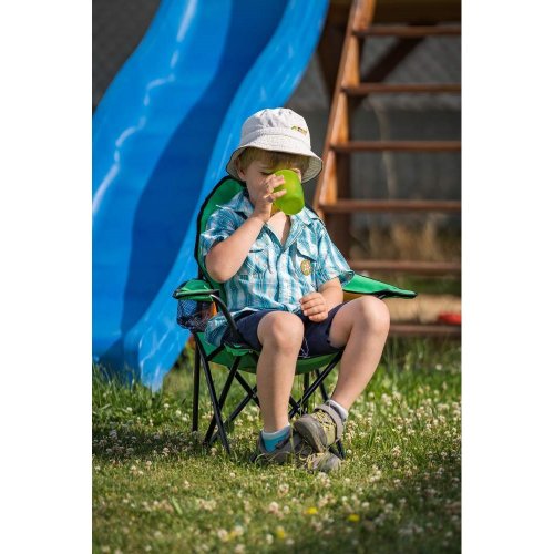 Detské kreslo s motívom žaby je rozkladacie kreslo vyrobené z kovovej konštrukcie a látkovým poťahom v tvare zvieratka.