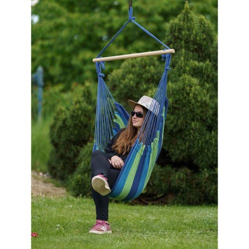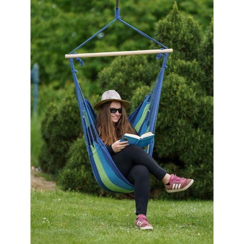 Závesné hojdacie kreslo je vhodné na terasy, do záhrad, ale aj interiéru. Kreslo má pevnú konštrukciu, jednobodové zavesenie a pestrofarebné prevedenie. Rozmery kresla: 100 x 100 cm, maximálna nosnosť 85 kg.