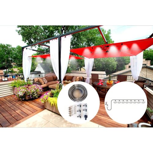 Sada na vytváranie ochladzujúcej vodnej hmly obsahuje 8 mikrotrysiek s nastaviteľným uhlom pôsobenia (z toho jedna koncová), 15 metra hadice, ktorej nastrihaním je možné umiestniť trysky podľa individuálnej potreby, 8 závesných klipov a adaptér na vodovodnú prípojku. Veľmi rýchlou a jednoduchou inštaláciou je možné zvýšiť vzdušnú vlhkosť v okolí a tým znížiť pocitovú teplotu až o 10 stupňov. Vhodné na použitie na pergolách, balkónoch, terasách, ale aj na zvýšenie vlhkosti v skleníkoch, alebo priestoroch určených pre zvieratá. Kvalita fungovania závisí hlavne od tlaku v prívodnej sústave, odporúčame nastavenie trysiek tak, aby vlhkosť nedopadala priamo na osoby či klzké povrchy, kde je nebezpečenstvo pošmyknutia, alebo predmety podliehajúcim účinkom vlhka.