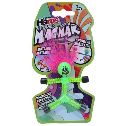 Hároš Magmák je vlasatá populárna figúrka. Naťahuj ich, spájaj ich! Sú vlasatí, sú chudí a navzájom sa priťahujú. Jeho magnetickým rukám nič neunikne. Strapatá magnetická figúrka, ktorá sa dá umiestniť na rôzne predmety.