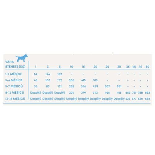 Kŕmny návod: zmenu krmiva je potrebné vykonávať postupne po dobu 7 dní. Po odstavení kŕmte 4 x až 5 x za deň. Do 4 mesiacov veku zmiešaním s teplou vodou v pomere 1 diel vody a 3 diely krmiva. Odstráňte zvyšky krmiva. Šteniatku okolo 1 roku postupne znižujte počet kŕmnych dávok až na 2 za deň. Pes musí mať vždy prístup k čistej, čerstvej vode. Skladovanie: skladujte na chladnom a suchom mieste. Obal by mal byť po použití vždy bezpečne uzavretý.