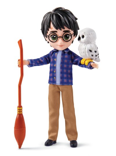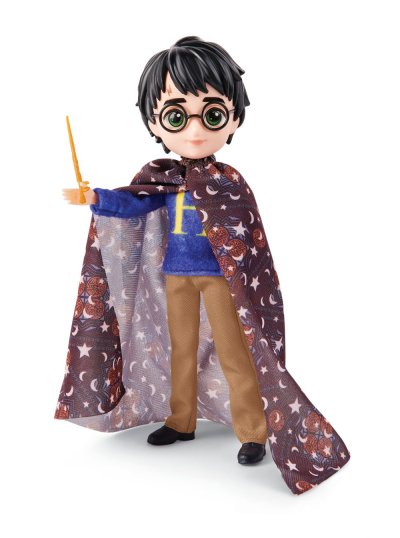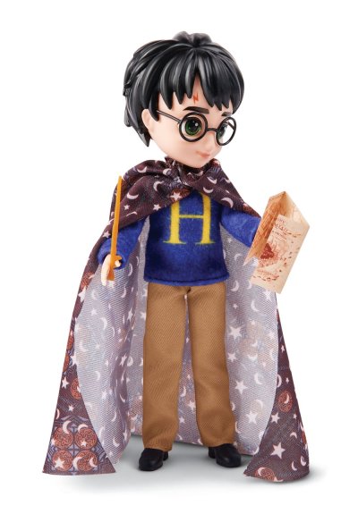 Deluxe figúrka Harry Potter. Má pohyblivé ruky, nohy, hlavu. Súčasťou balenia je sada prevlekov ako "H" sviatočný sveter a plášť neviditeľnosti. Nechýba Nimbus 2000, prútik, Záškodnícky plánik a Hedviga. Vhodné od 6 rokov.