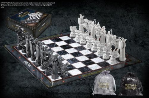 Kúzelnícky šach, s ktorými ste sa mohli stretnúť hneď v prvom diele Harry Potter a Kameň mudrcov. Jedná sa o set hracej dosky s plastovými figúrkami. Veľkosť figúrok od 5 do 12 centimetrov. Rozmer hracej dosky 47x47 cm. Hmotnosť setu: 1,7 kg Oficiálna licencia Harry Potter Výrobca: britská spoločnosť Noble Collection