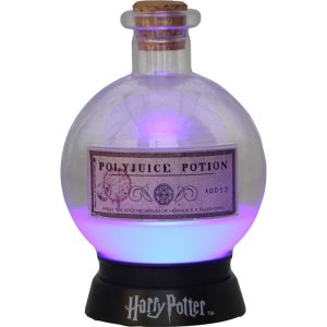 Krásna LED lampa v prevedení Mnoholičného elixíru, ktorá je napájaná pomocou batérie. Lampan mení farbu svetla.