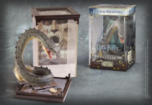 Detailne spracovaná soška Baziliška - tvora, ktorý stráži Tajomnú komnatu. Táto figúrka je súčasťou kolekcie Magical Creatures z dielne Noble Collection. Soška má rozmery približne 11 cm na šírku a 18,5 cm na výšku. Obsah vitríny je možné vybrať. Oficiálne lic