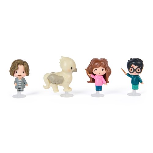 Prežite dramatickú scénu z Harryho Pottera a Väzňa z Azkabanu so sadou figúrok z kúzelníckeho sveta z radu Micro Magical Moments! Toto deluxe multibalenie obsahuje figúrky Harryho Pottera, Hermiony Grangerovej, Siriusa Blacka a Klofana o veľkosti 3,81 cm, priehľadnú krabičku s obojstranným pozadím a štyri stojany na figúrky. Rozbaľte si svoje postavičky a objavte ich rozkošné detaily: Harryho jazva a okuliare, Hermiona držiaca prútik, pruhovaná uniforma, ktorú má na sebe Sirius, a Klofanove krídla! Tematické pozadie krabičky zobrazuje kľúčovú scénu záchrany Siriusa Blacka a Klofana – detail, ktorý si fanúšikovia a zberatelia Harryho Pottera zamilujú. Postavy si môžete vystaviť na stojane, v krabičke alebo ich postaviť samostatne. Pre viac strhujúcich možností vystavenia sa krabičky dajú naskladať na seba a pospájať s ostatnými sadami a figúrkami z radu Micro Magical Moments (každá sa predáva zvlášť)! Pozbierajte ich všetky a vytvorte si vlastné jedinečné scény z kúzelníckeho sveta! Hračky z kúzelníckeho sveta Harryho Pottera sú nevyhnutným darčekom pre dievčatá, chlapcov a fanúšikov, ktorí majú radi miniatúrne hračky, zberateľské predmety, kúzelnícke paličky, akčné figúrky, bábiky a doplnky pre bábiky. Sú skvelým darčekom k narodeninám, Vianociam alebo ako drobná pozornosť. Rozšírte svoju kolekciu postáv z kúzelníckeho sveta sadou figúrok zo scény záchrany z filmu Harry Potter a Väzeň z Azkabanu z radu Micro Magical Moments!