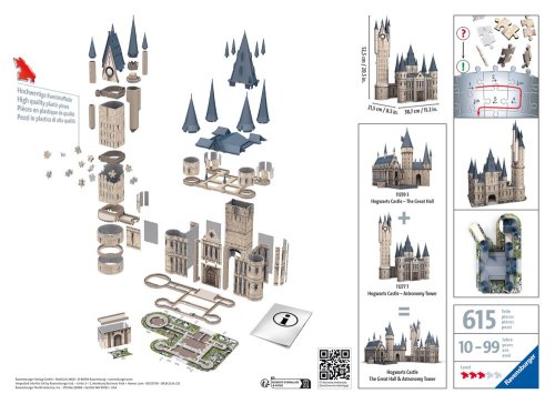 Zažite jedinečnú kombináciu skladania a stavania a vytvorte si doma dokonalý model dobre známej časti Rokfortského hradu - Astronomické veže. Ponorte sa do sveta Harryho Pottera a zažite množstvo dobrodružstiev s Harrym a jeho priateľmi. Kvalitné, plastové puzzle s technológiou Easyclick. Bez nutnosti lepenia! Tento model Astronomickej veže je možné spojiť s modelom Veľkej siene do jedného impozantne veľkého modelu Rokfortského hradu.