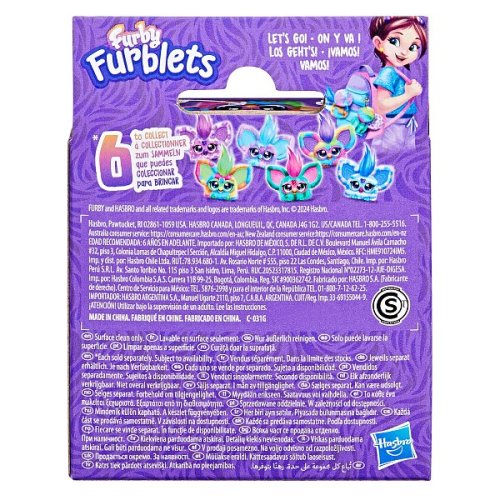 Furblet Electric Rave hrá veselú hudbu. Viac ako 45 zvukových reakcií: Furblets hovorí jazykom Furbish, vydávajú smiešne zvuky a spievajú originálne melódie. Dokážu harmonizovať, spoločne spievajú piesne a spoločne interagujú s veľkou hračkou Furby. Vďaka odnímateľnému klipu je možné Furblet ľahko pripnúť na batoh alebo tašku. Na prevádzku sú potrebné 3ks batérie typu LR44 (sú súčasťou balenia).
