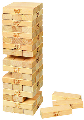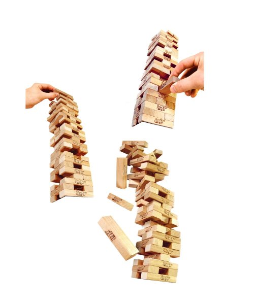 Postav zo všetkých kvádrov Jenga veža. Potom jednou rukou postupne vyťahuj kvádre a umiestňuj ich hore, aby si vežu ešte zvýšil. Je tvoja ruka dostatočne pevná, aby si celú vežu nezhodil? Obsahuje 54 kvádrov Jenga z tvrdého dreva a pomôcku na stavanie.