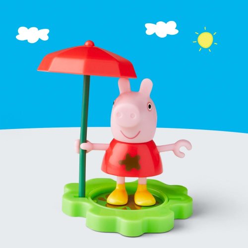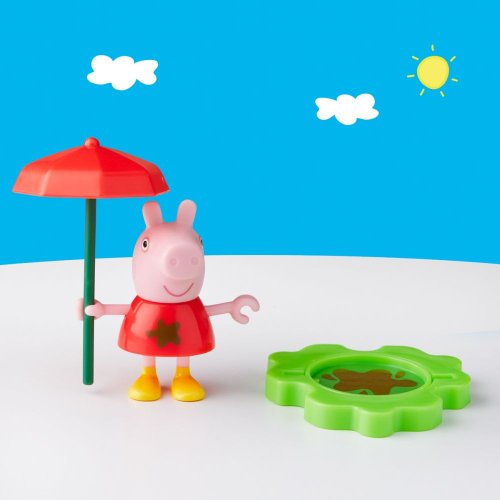 Prasiatko Peppa zábava v kaluži – figúrka s doplnkami. Deti si môžu prehrávať scény zo seriálu alebo vymýšľať nové vlastné dobrodružstvá s figúrkou Peppa pig zábava v kaluži. Táto sada je úžasnou hračkou pre deti, ktoré milujú tento seriál. Kolekcia 3 druhov - Peppa, George a Suzy. Assort je náhodný mix modelov. Výber nie je možné ovplyvniť. Každé balenie obsahuje figúrku, stojan, slnečník a dáždnik. Rozmery balenia: 15,1 x 12,7 x 3,8 cm. Vek: 3+