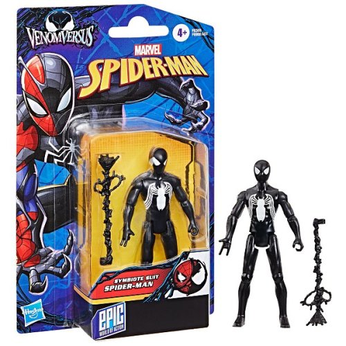 Fanúšikovia sveta Marvel, túto skvelú 10 cm vysokú figúrku Spider-Man Symbiote Suit si zamilujete. Vďaka starostlivým detailom je figúrka Spider-Man z kolekcie Venom Versus taktiež skvelým zberateľským kúskom. Skvelý tip na darček pre fanúšikov všetkých vekových kategórií. Figúrka má pohyblivé kĺbové končatiny a hlavu. Táto zberateľská akčná figúrka Marvel Spider-Man Symbiote Suit je súčasťou exkluzívnej série Epic World of Action od Hasbro a vyznačuje sa charakteristickým čierno-bielym designom. Figúrky VenomVersus obsahujú aj špecifický Venomized doplnok pre dobrodružstvá poháňané symbionty. Vyrobené z kvalitného plastu. Balené v blistri. Rozmery balenia: 20,32 x 12,7 x 3,17 cm. Vek: 4+