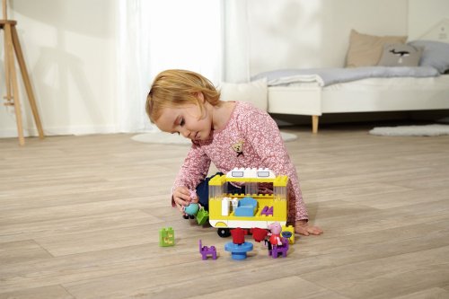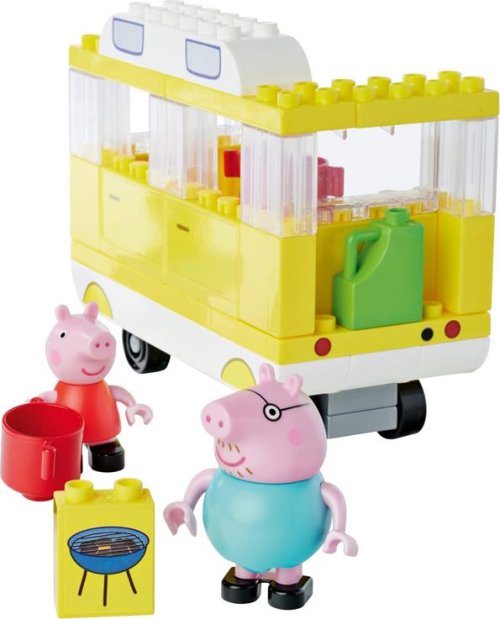 sada obsahuje dve figúrky - prasiatko Peppa a jej otecka s kockami budete môcť postaviť karavan pre svoje obľúbené postavičky a vyraziť na víkendový výlet, kde budete môcť spoločne s Peppou a jej oteckom grilovať karavan je vybavený posteľou, varičom, chladničkou a doplnkami pre hranie mimo karavanu , pred ktorým je útulné posedenie, kde si možno uvariť čaj a grilovať stavebnice poskytne deťom skvelú zábavu rozvíjajúcu ich predstavivosť, manuálne zručnosti a motorickú koordináciu prostredníctvom hry sa deti učia logickému mysleniu, rozpoznávaniu tvarov a farieb, manipulácii s predmetmi a ich priraďovaniu stavebnice je kompatibilný s ďalšími kockami od Hasbro Big (predávané samostatne)