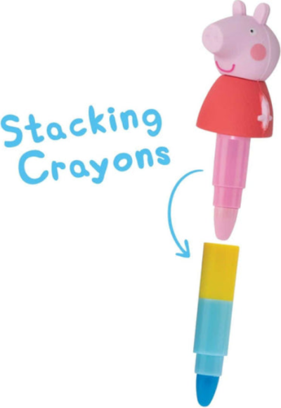 Silné stohovacie voskovky s figúrkami postavičiek zo seriálu Prasiatko Peppa.