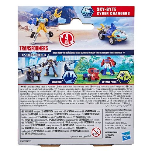 Transformers Cyberworld - Cyber Changers prináša roboty v prestrojení do úplne novej úrovne boja! Starí známi - obľúbené postavy, Autoboti a Decepticoni, ktorí možno vyzerajú trochu povedome, sa vracajú do akcie. Akčná figúrka Sky-Byte sa ľahko premení z robota na alternatívny mód žraloka v 4 krokoch. Premena v 4 krokoch je dostatočne jednoduchá, aby ju deti zvládli samé. V režime robota je figúrka vysoká približne 10 cm a je polohovateľná. Vyrobené z kvalitného plastu. Rozmery balenia: 15,08 x 12,7 x 4,9 cm. Vek: 6+