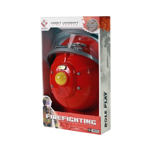 Praktická helma s ochranným krytom pre malých hasičov! Tento kvalitný kúsok je vyrobený z plastu a zdobený odznakom na prednej strane. Navyše pri stlačení tlačidla helma bliká a hrá. Veľkosť helmy si môžeš nastaviť podľa vlastnej hlavy! Tak zaži skutočnú záchrannú akciu. Súčasťou balenia sú 3 ks batérií typu AG13. UPOZORNENIE: Táto hračka nezaisťuje ochranu.