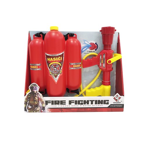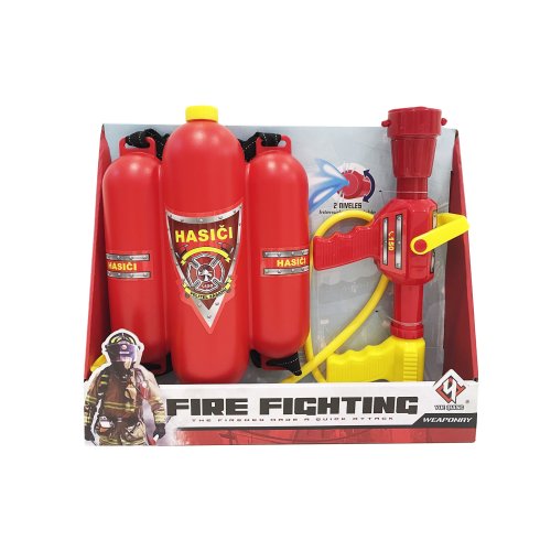 Zaži skutočnú záchrannú akciu a využi na to túto skvelú hasičskú sadu! Naplň zásobník vodou, priskrutkuj hadicu a môžeš začať hasiť!