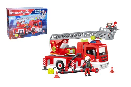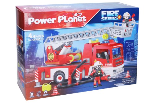 Hasičské auto s rebríkom stavebnice. Veľkosť 40 cm. Výsuvný rebrík. svetelné a zvukové efekty. Batérie 2xAAA nie sú súčasťou