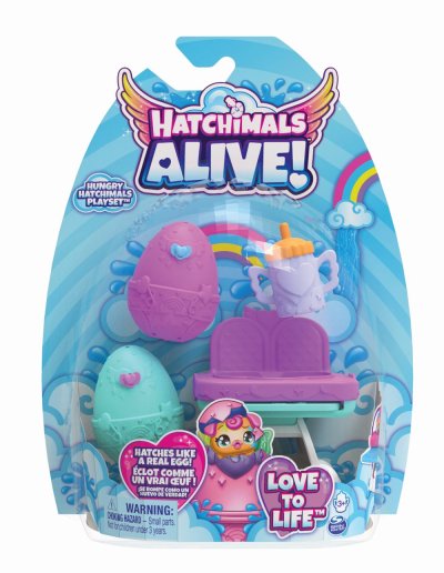 Zažite nekonečnú zábavu pri kŕmení s hracou sadou Hatchimals Alive Hungry Hatchimals! Vďaka vašej láske a starostlivosti superroztomilej postavičky Hatchimals Alive magicky ožijú úplne novým spôsobom. Z vajíčka pre samostatné liahnutie sa po aktivácii vodou vyliahnu ako zo skutočných vajec! Táto hracia súprava obsahuje dve farebné vajíčka Hatchimals s dvoma postavičkami, fľaštičku, dva cumlíky a stoličku s motívom dúhového mráčika. Keď chcete začať proces liahnutia, vyberte cumlíky z vajíčok, naplňte fľašu vodou a vsuňte ju do vajíčok. Počas niekoľkých sekúnd sa vaši roztomilí noví kamaráti začnú liahnuť a prerazia vajíčko! Umiestnite hladné Hatchimals do stoličky a využite svoju fantáziu k dobrodružstvám pri hre na kŕmenie. Podložku stoličky je možné vysunúť a fľaša s cumlíkmi doplní vaše rozprávanie! Pre ešte viac hier si kúpte hracie sady Hatch N'Stroll a Hatchi-Nursery (predávajú sa samostatne)! Hračky Hatchimals pre deti sa skvele hodia pre všetkých, ktorí majú radi zberateľské predmety, figúrky, malé hračky, bábiky a domčeky pre bábiky. Skvelý darček k narodeninám a Vianociam aj pri akejkoľvek inej príležitosti pre deti od 3 rokov. Vytvorte si vlastný svet zvieratiek Hatchimals s hracou sadou Hatchimals Alive Hungry Hatchimals!
