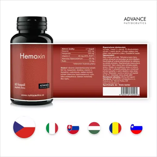 Hemoxín je doplnok stravy, ktorý obsahuje unikátny komplex 5 prírodných aktívnych látok s vysokým obsahom hesperidínu a diosmínu. Prispieva k normálnej činnosti žilového a cievneho systému.