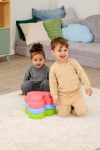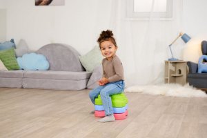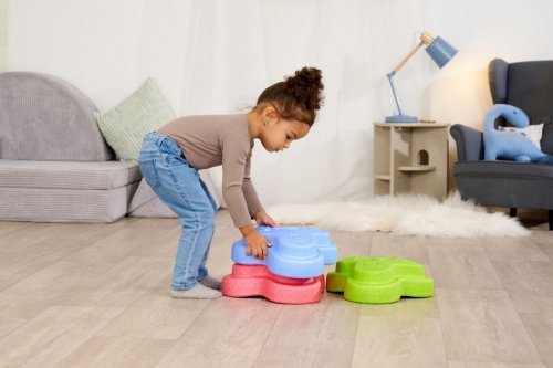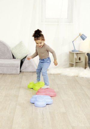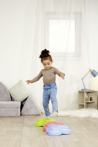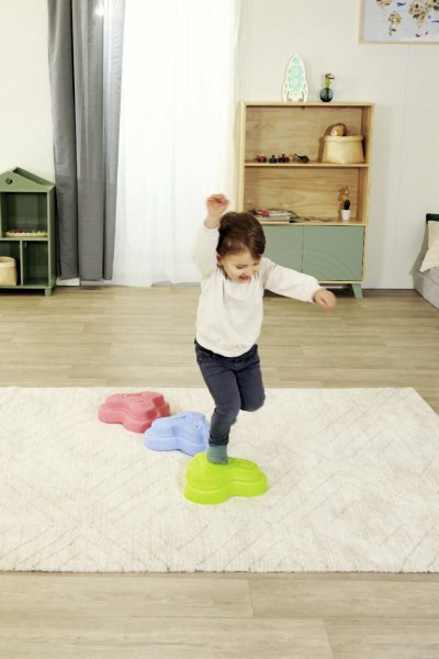 Sada 5 balančných nášľapných kameňov pre deti - v červenej, modrej, zelenej, oranžovej a žltej farbe - Mäkké kocky so štruktúrovaným povrchom pre hmatovú hru a stavanie. Tieto farebné hracie kamene boli špeciálne vyvinuté pre batoľatá od 12 mesiacov a hravou formou podporujú zmyslové vnímanie, motorický vývoj a zmysel pre rovnováhu. Vyrobené z EPP: 90% vzduchu, 10% materiálu. Obzvlášť robustné a extrémne ľahké. Tri rôzne povrchové textúry, kamene unesú zaťaženie až 120 kg. Vďaka svojmu materiálu sú Heppy Rocks teplejšie ako iné plastové hračky, ľahko sa čistia, sú odolné voči slinám a potu a ideálne na použitie vo vnútri aj vonku.