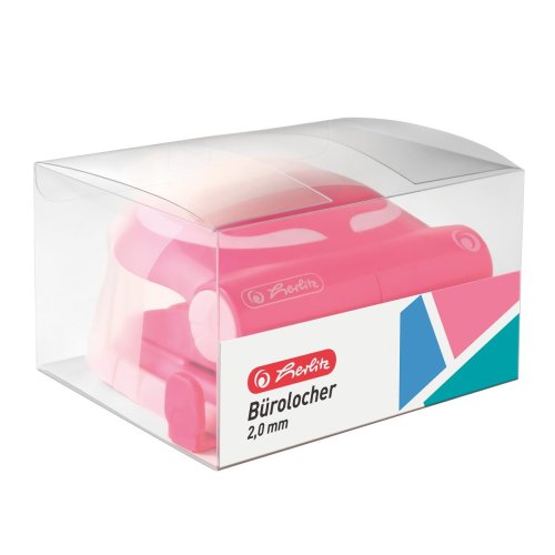 Ergonomicky tvarovaný dierovač v ružovej farbe pre pohodlné a štýlové dierovanie.