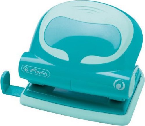 Ergonomicky tvarovaný dierovač v tyrkysovej farbe pre pohodlné a štýlové dierovanie.