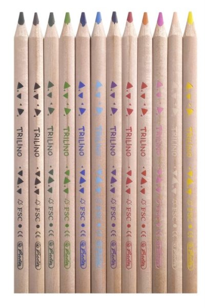 Pastelky v tvare trojuholníka s tuhou s hrúbkou 0,5 cm. Vyrobené z prírodného dreva. Balenie obsahuje dvanásť pasteliek (čierna, hnedá, tmavo zelené, svetlo zelená, tmavo modrá, svetlo modrá, fialová, ružová, béžová, červená, oranžová a žltá). Dĺžka pasteliek cca 17,5 cm.