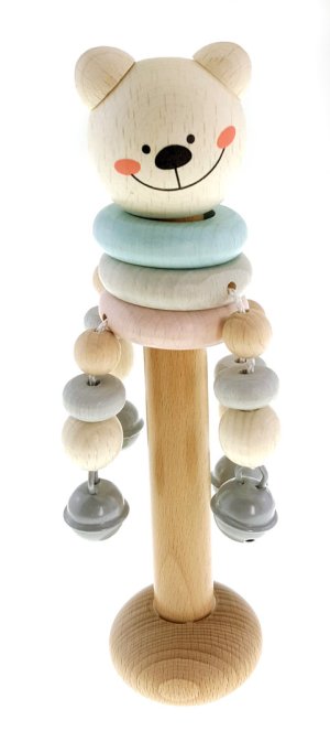 Vysoko kvalitná drevená hračka stimuluje predstavivosť a zaujme pastelovými farbami. Hravou formou trénuje jemnú motoriku dieťaťa. Ak si ju chcete užiť po dlhú dobu, vyvarujte sa nadmerného pôsobenia vody, čistite hračku iba vlhkou handričkou. Hrkálka nevyvárajte, nedávajte do sterilizátora ani nepoužívajte iné sterilizačné metódy. Hlavné vlastnosti: rozvíja motorické zručnostivyrobené eticky z dreva z ekologicky obhospodarovaných lesovpoužité ekologické a odolné farby