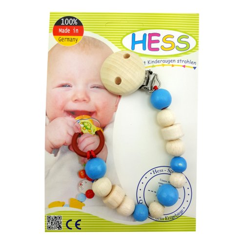 Retiazka opatrená kovovým klipsom a univerzálnym pružným silikónovým krúžkom na uchytenie cumlíka. Kvalitná povrchová úprava a nezávadné farby sú odolné voči slinám aj potu. Je vyrobený v Nemecku, z dreva z nemeckých lesov. Hlavné vlastnosti: univerzálny silikónový krúžokpraktický kovový klipsodolné a ekologické spracovanie
