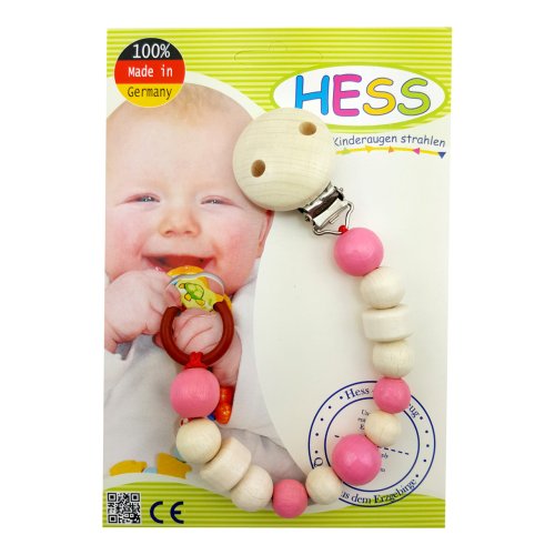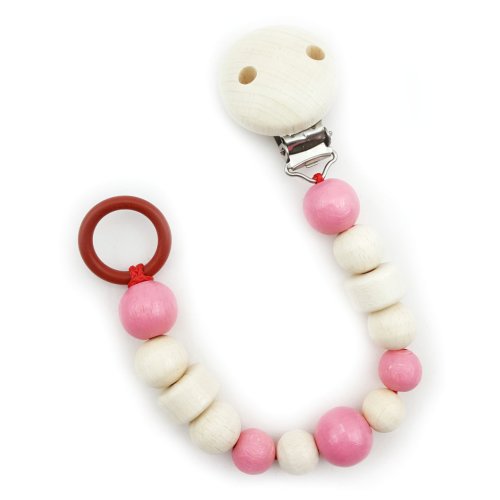Retiazka opatrená kovovým klipsom a univerzálnym pružným silikónovým krúžkom na uchytenie cumlíka. Kvalitná povrchová úprava a nezávadné farby sú odolné voči slinám aj potu. Je vyrobený v Nemecku, z dreva z nemeckých lesov. Hlavné vlastnosti: univerzálny silikónový krúžokpraktický kovový klipsodolné a ekologické spracovanie