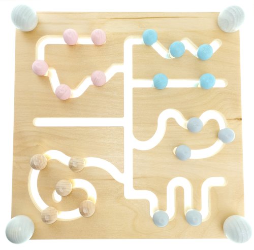 Drevený labyrint v tvare dosky s farebnými guličkami. Deti posúvajú guličky po cestičkách. Rozvíja motorické zručnosti detí a koordináciu. Hlavné vlastnosti: drevená vzdelávacia hračka podporuje jemnú motoriku rozvíja logické myslenie vyrobené z brezového lepeného dreva.