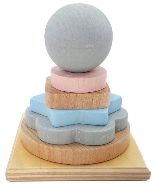 Hra s 5 stohovacími tvarmi a drevenou guľou je klasikou medzi hračkami. Vďaka svojmu tvaru ju možno ľahko uchopiť, je teda vhodná pre malé detské ručičky. Stohovanie podporuje koordináciu a jemnú motoriku rúk. Hlavné vlastnosti: 7dielna stohovacia veža podporuje koordináciu a jemnú motoriku tvary a farby sa dieťa naučí hravou formou