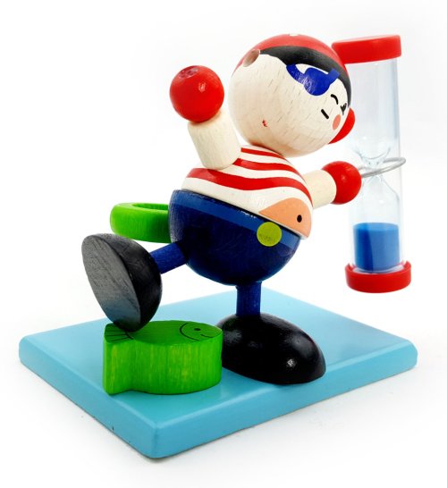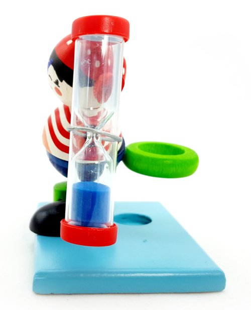 Vďaka týmto presýpacím hodinám je čistenie zubov ešte zábavnejšie. Dĺžka presýpania je 2 minúty. Za telom piráta je úchyt - držiak pre zubnú kefu ek. Hlavné vlastnosti: s držiakom na zubnú kefku doba presypávania 2 minveľkosť 9 cm vyrobené z pôvodných neošetrených driev