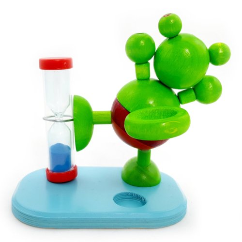 Vďaka týmto presýpacím hodinám je čistenie zubov ešte zábavnejšie. Dĺžka presýpania je 2 minúty. Za telom žaby je úchyt - držiak na zubnú kefku. Hlavné vlastnosti: s držiakom na zubnú kefku doba presypávania 2 minveľkosť 12 cm vyrobené z pôvodných neošetrených driev