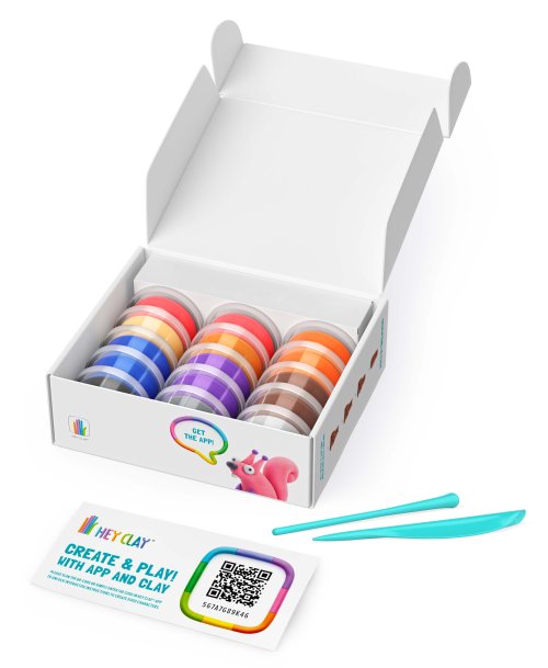 Z modelovacej hmoty HEY CLAY si deti môžu vytvoriť nepreberné množstvo rôznych postavičiek, zvieratiek alebo obľúbených hrdinov. Po vymodelovaní je dôležité nechať modely na vzduchu dostatočne zatvrdnúť a tým okamihom sa môžu stať súčasťou ďalších hier a zábavy. Je možné si tak jednoducho vytvoriť vlastné figúrky a postavičky, alebo schovať Hay Clay opäť do téglika pre ďalšiu tvorbu. S mobilnou aplikáciou Hey Clay (iOS, Android), ktorú si zadarmo stiahnete, a ktorá ponúkne deťom ďalšie možnosti rozvíjania fantázie, farieb a kúzlenia s vytváraním nových postavičiek – kód v hodnote 4,99 USD na otvorenie aplikácie, nájdete v každom balení Sada Hey Clay obsahuje 18 nádobiek s mäkkou, jemnou a voňavou modelou. Farby nachádzajúce sa v balení Vám umožnia vytvoriť 6 postavičiek. Vek 3+