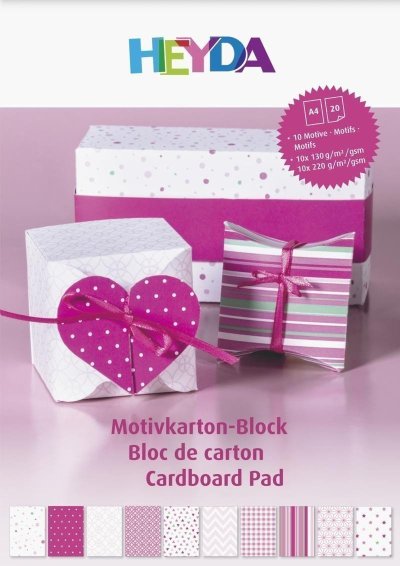 Blok farebných papierov, 10 motívov v 2 gramážach, prevažne obojstranne potlačené. Gramáže papierov 100 a 220 g/m2