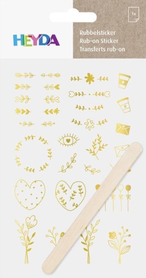 Balenie obsahuje 1 list v rozmere 10 x 19 cm a 1 uhladzovacie drievko. Vystrihnite motív, odlúpnite podkladovú fóliu, preneste a pomocou trecieho drievka uhlaďte. Jednoduché zdobenie s vynikajúcim optickým vzhľadom na rôznych materiáloch. Možno použiť na papier, drevo, ale aj hladké povrchy ako je sklo, porcelán a mnoho ďalších.