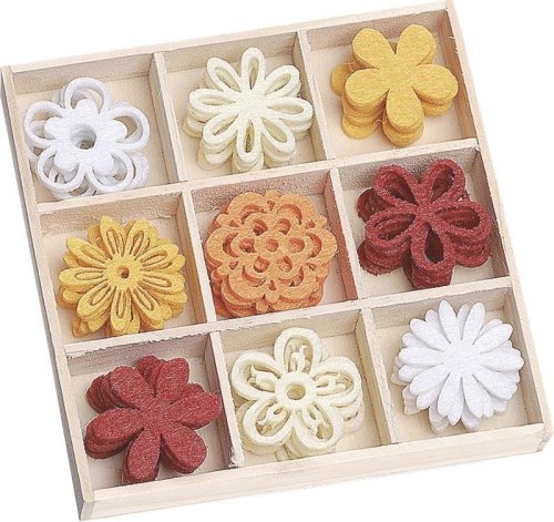 Filcové ozdoby v praktickom boxe, 9 motívov po 5 ks. Rozmer jedného motívu cca 3cm x 3cm. Ideálne na zdobenie prianí, darčekov, krabičiek a pod.