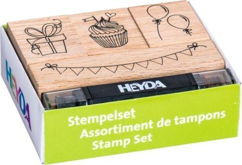 Pečiatkovací set obsahuje 4 ks drevených pečiatok rôznych veľkostí a farbiacu ceruzku. Jedná sa o gumovú pečiatku na drevenom klátiku čo zaručuje veľmi kvalitnú tlač. Pri použití kvalitnej pečiatkovacej farby vykreslí aj tie najjemnejšie detaily. S touto sadou vyť