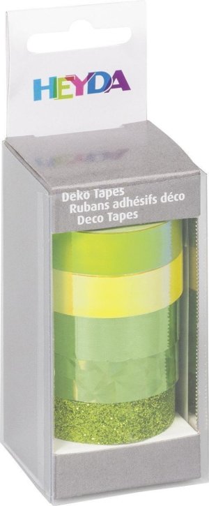 Balenie obsahuje 5 kusov lepiacich papierových pások s lesklým, holografickým a dúhovým efektom. Balenie obsahuje 4 rolky 5m x 12mm a 1 glitrová (trblietavá) rolka 2m x 12mm.