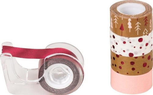 Balenie obsahuje 5 typov ozdobných samolepiacich pások s odvíjacím strojčekom. Každá rolička má rozmer 3m x 12mm. Veľmi ľahko sa zložia, je možné opätovne použiť. Vhodné na ozdobenie darčekov, prianí, scrapbookových projektov i dekorácií v domácnosti.