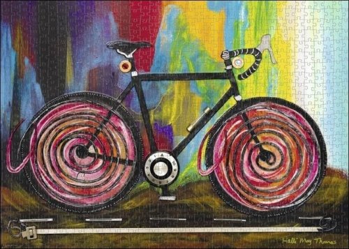 Bicykel neslúži len na presun z bodu A do bodu B, ale je tiež skvelým prostriedkom pre fyzickú kondíciu a navyše chráni životné prostredie. Používa sa všade na svete, bez ohľadu na vek alebo postavenie v spoločnosti. Tak niet divu, že si našlo svoje miesto aj vo svete moderného umenia... Rozmer zloženého puzzle cca 70 x 50 cm